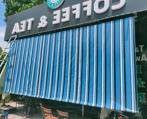 Nhiều mẫu mã, màu sắc và họa tiết giúp mái bạt – mái xếp phù hợp mọi công trình: từ nhà dân đến quán café hiện đại.