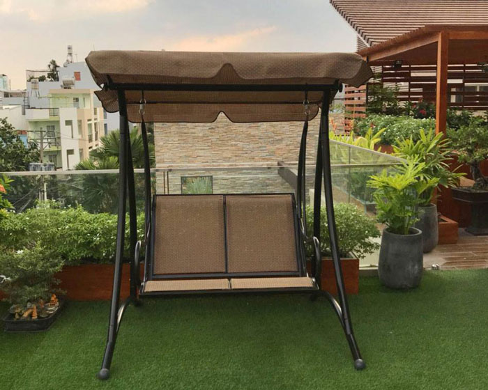Xích đu ngoài trời được đánh giá cao về mặt thiết kế, Khung sản phẩm được thiết kế với những đường cong mềm mại và tinh tế. kết hợp với mái che đem lại sự tiện lợi khi sử dụng, ghế được thiết kế đôi giúp người dùng ngồi đôi thoải mái, Đặc biệt với tông màu nâu sang trọng dễ dàng kết hợp hài hòa với nhiều không gian ngoại thất khác nhau đem lại sự ấn tượng cho không gian nhà bạn.