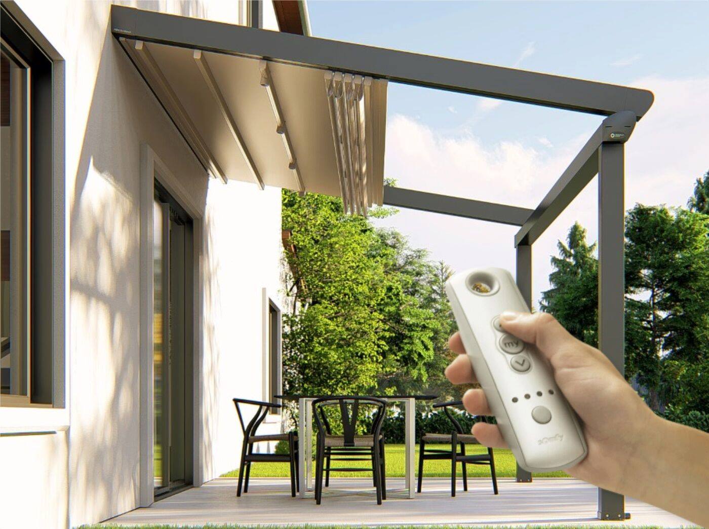 Mái hiên điều khiển từ xa mang lại giá trị thẩm mỹ cao, làm cho không gian trở nên hài hòa và sang trọng hơn.
